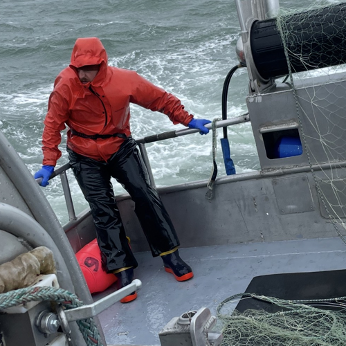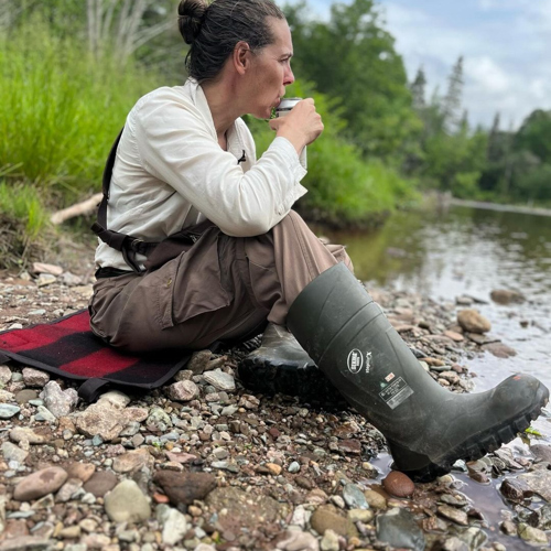 The distinctive look of my Bekina StepliteX StormGrip boots has attracted attention from both expedition team members landing on Goudier Island, and professional sailors I meet on board the ships that visit us. And I'm happy to tell them that the performance of the boots more than lives up to their looks. I wear the boots daily to travel back and forward to expedition ships in their zodiacs, and I find they are in their element around the edge of the water. I never have to worry that I'll slip on wet rocks, on the pontoons of the zodiac, or while I'm ascending boarding ladders on ships. I also carry out regular environmental surveys along the shoreline of our island, looking for and removing waste that washes up from the sea, and I feel super confident walking over the wet ice-polished rock and uneven cobblestone beaches the intertidal zone in my Bekinas.